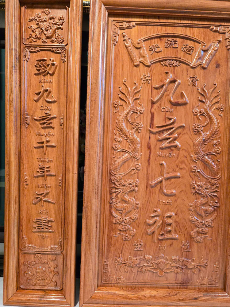 | Tên sản phẩm: | Liễn thờ gia tiên Cửu Huyền Thất Tổ bằng gỗ hương đá xịn -TG251H |