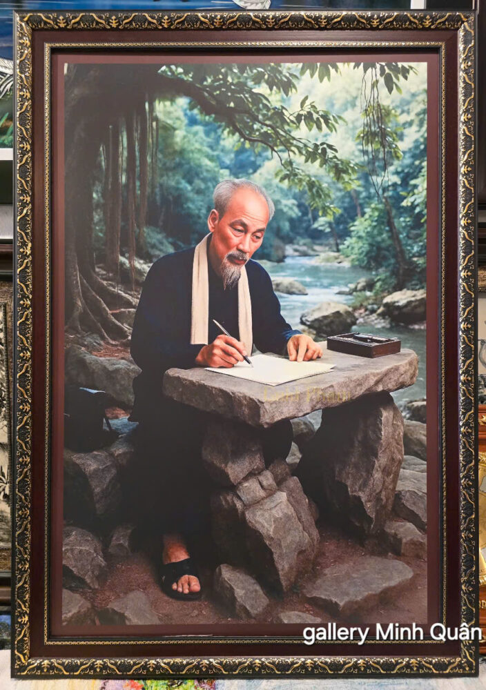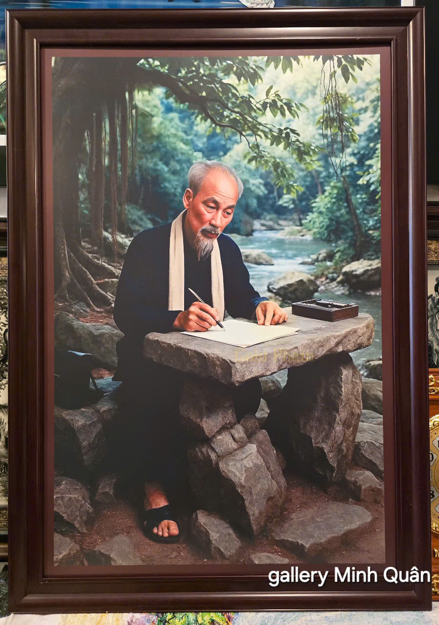 * Loại hình: Đây là một bức ảnh tư liệu lịch sử đã được phục dựng màu hoặc vẽ lại dưới dạng tranh sơn dầu/tranh in để làm quà tặng hoặc thờ tự. Dòng chữ “gallery Minh Quân” ở góc dưới cho thấy đây có thể là sản phẩm từ một cửa hàng tranh nghệ thuật.
