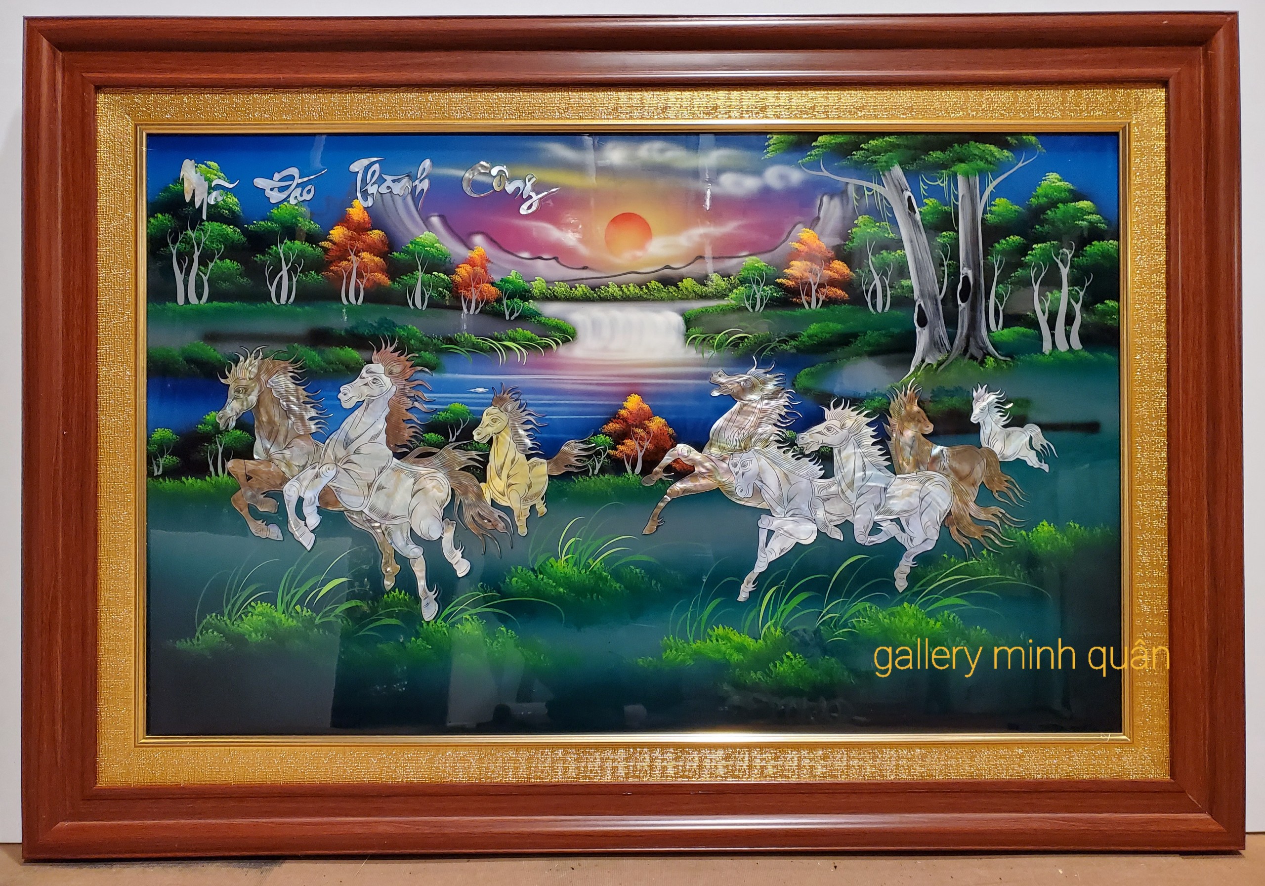 Bát mã toàn đồ -Tranh sơn mài khảm trai, ốc – SM200