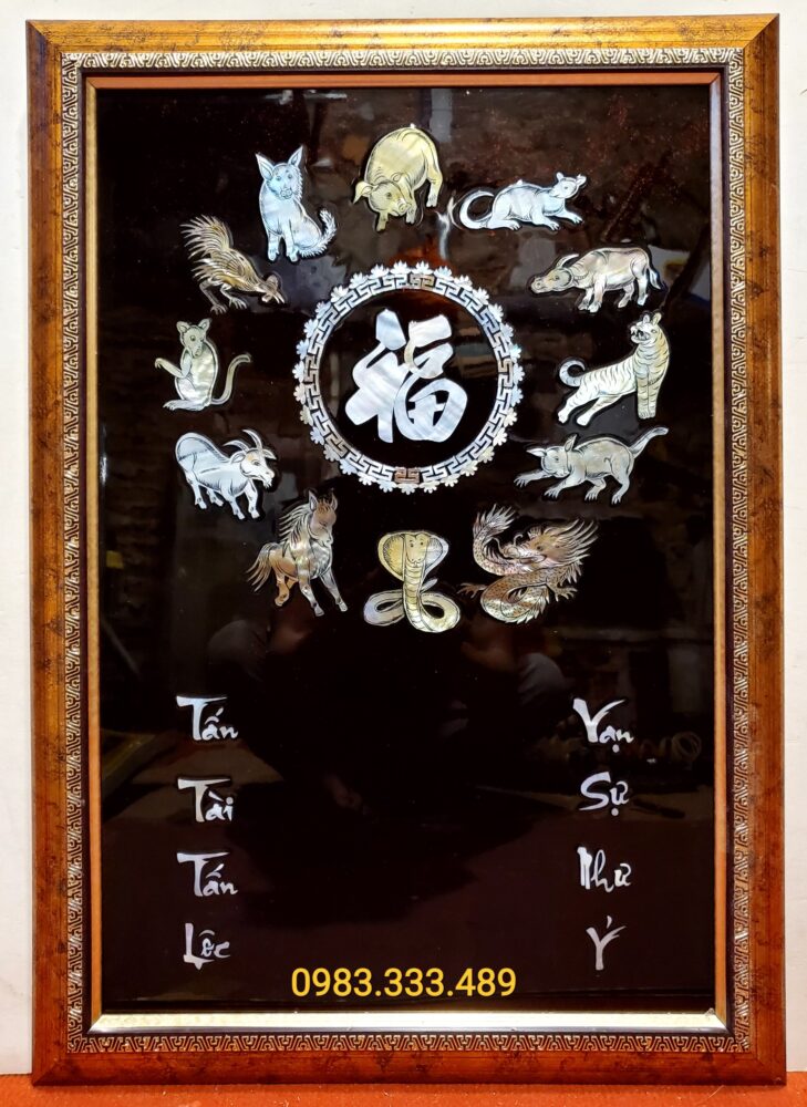 | Tên sản phẩm: | Đốc lịch treo tường sơn mài chữ Phúc (12 con giáp)-SM236 |