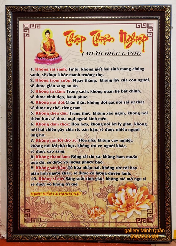 | Tên sản phẩm: | Tranh chữ in dầu” Thập Thiện Nghiệp -Mười Điều Lành” ID188 |