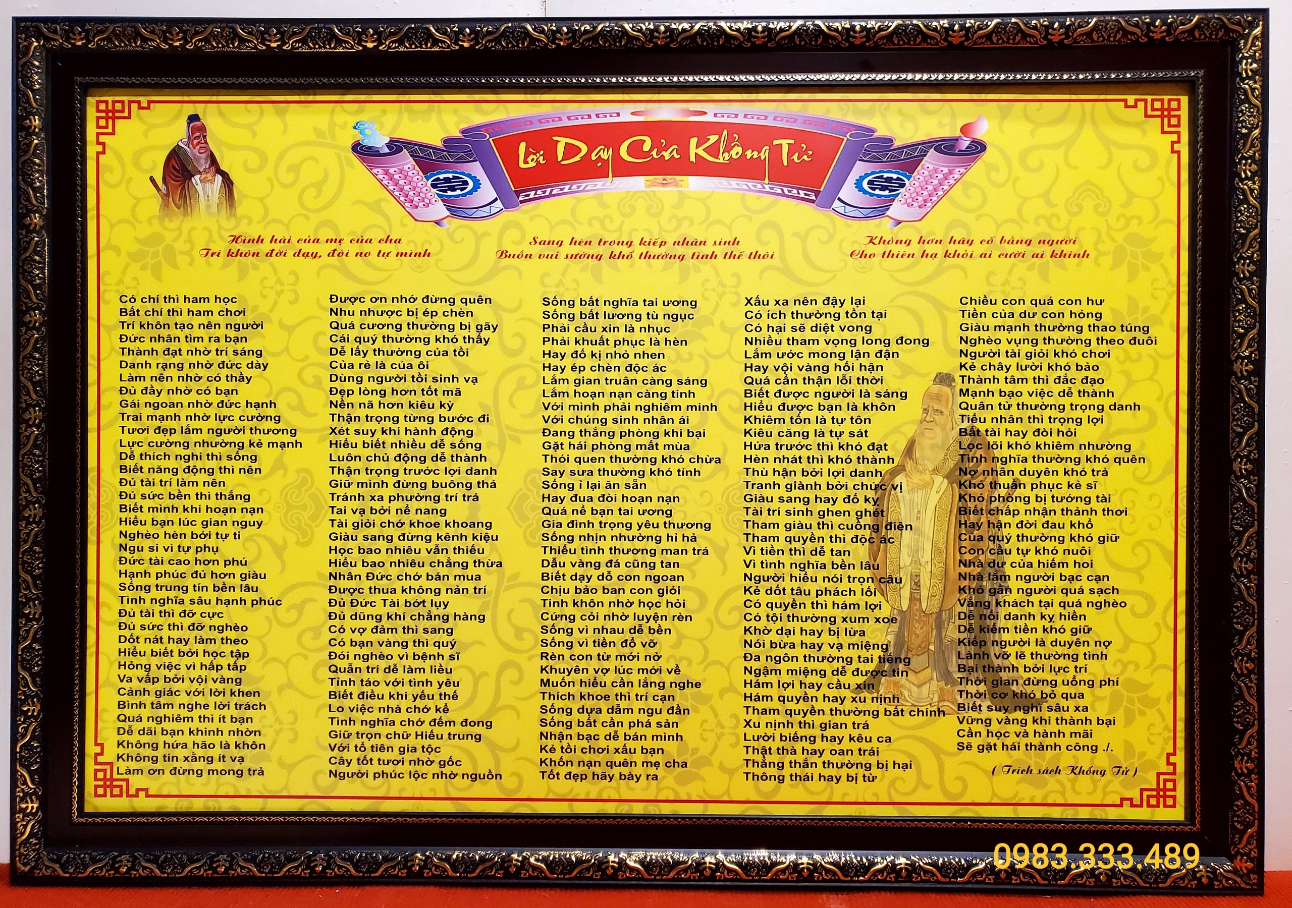 | Tên sản phẩm: | Tranh chữ lời dạy của khổng tử -ID189T |