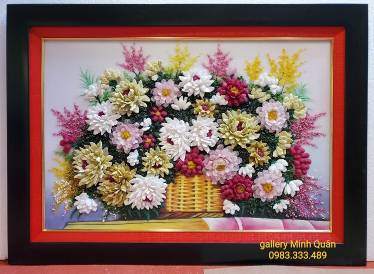Tranh đá nghệ thuật xếp nổi – Lẵng Hoa