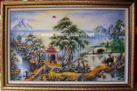 | Tên sản phẩm: | Tranh đá quý- Đồng quê cây đa -TD065 |