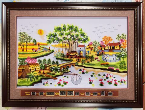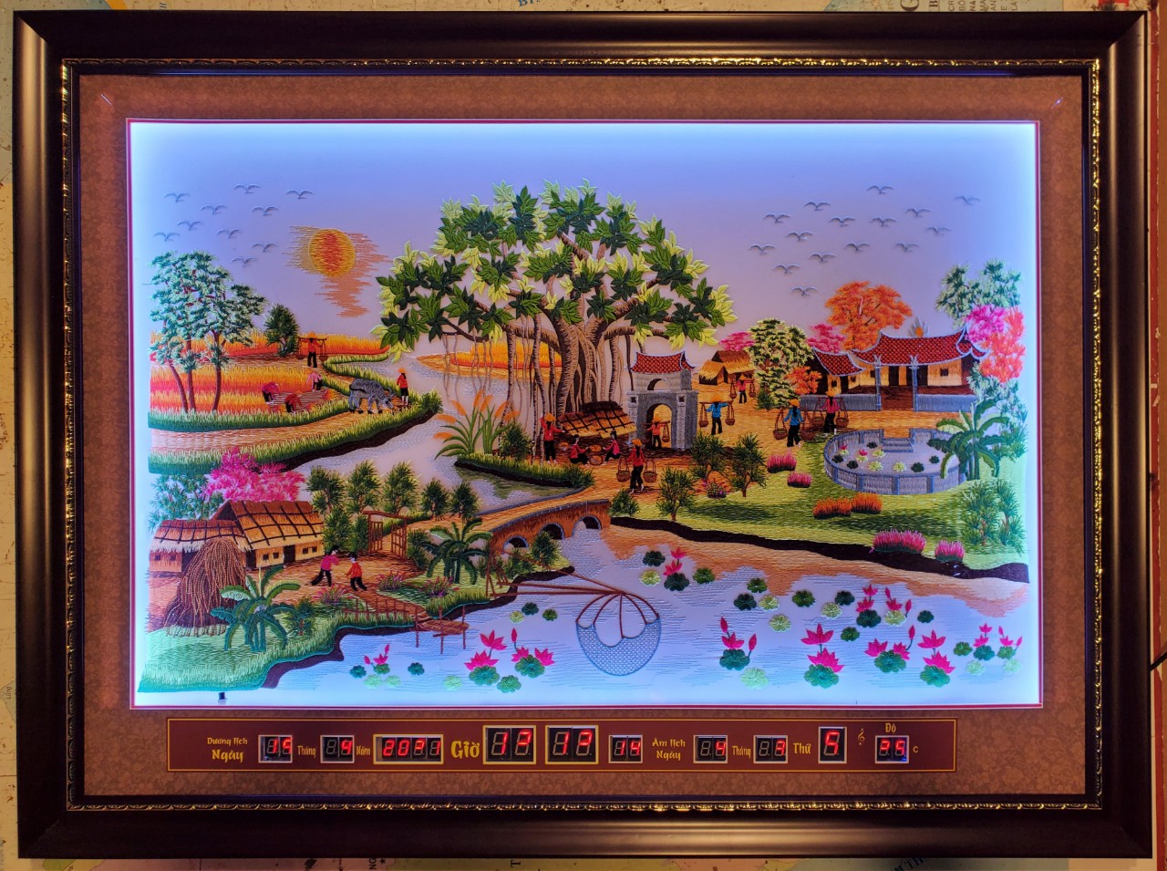 | Tên sản phẩm: | Tranh thêu đèn led lịch vạn niên -Làng quê thanh bình -DH2025 |