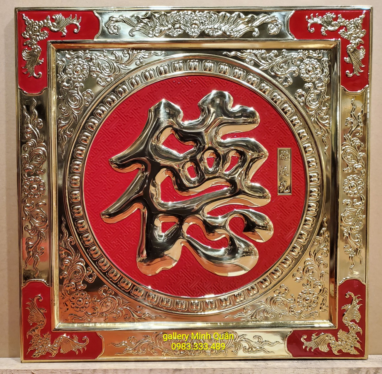 TRANH CHỮ – TÂM – ĐỨC -NHẪN – PHÚC -LỘC -THỌ BẰNG ĐỒNG VÀNG LIỀN TẤM