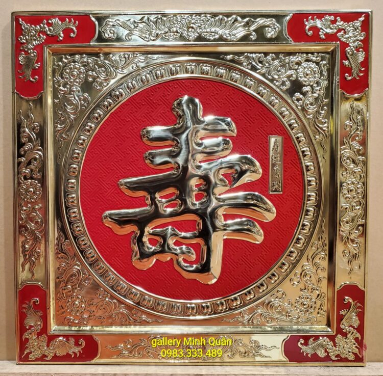 TRANH CHỮ – TÂM – ĐỨC -NHẪN – PHÚC -LỘC -THỌ BẰNG ĐỒNG VÀNG LIỀN TẤM