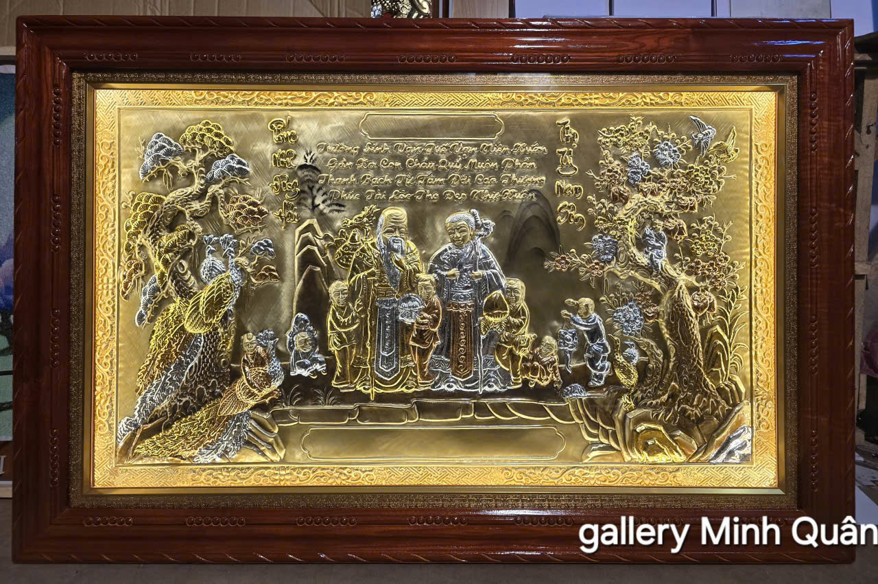 Tranh đồng liền tấm mạ vàng, bạc mừng thọ ông bà