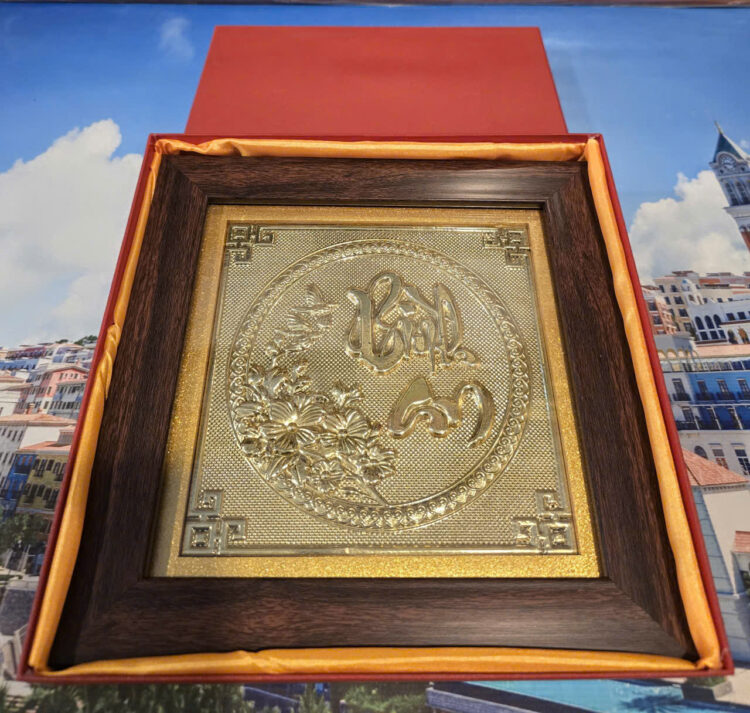 Chất liệu chế tác bằng đồng vàng, khung tranh composite màu nâu vân gỗ đẹp sang trọng.