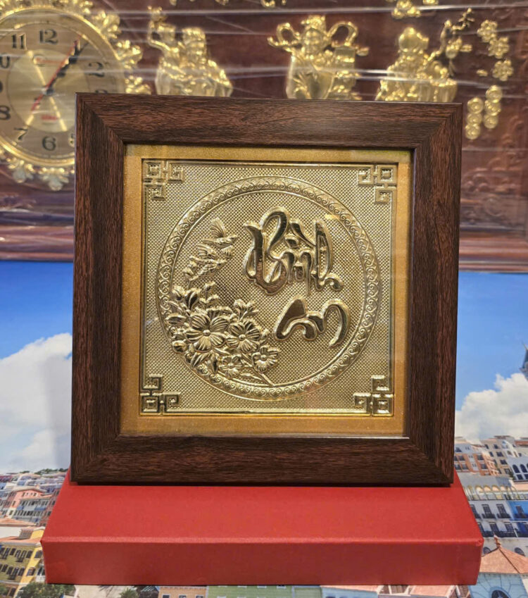 Tranh đồng quà tặng bày bàn chữ Bình An.