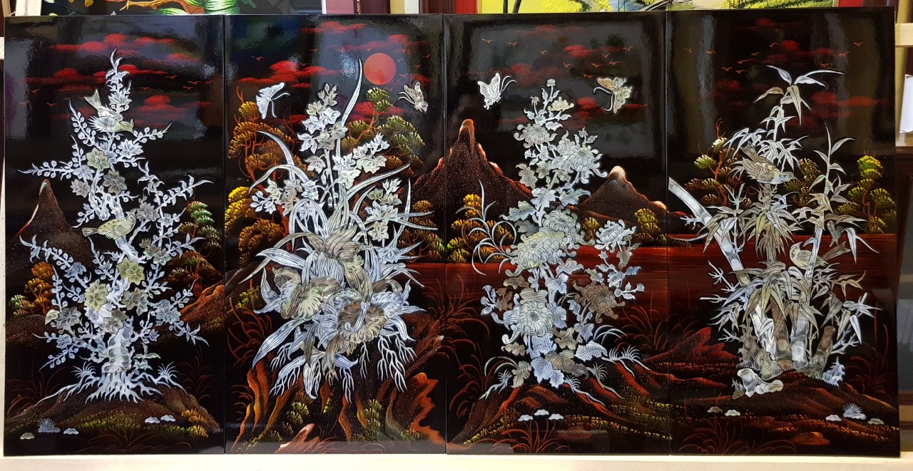 Tranh khảm trai- mai lan cúc trúc -Bốn mùa bình an -Xuân hạ thu đông.