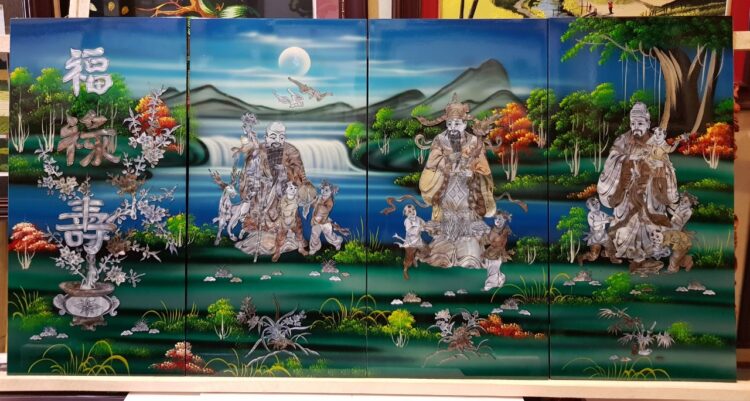 TRANH SƠN MÀI KHẢM TRAI,PHÚC LỘC THỌ