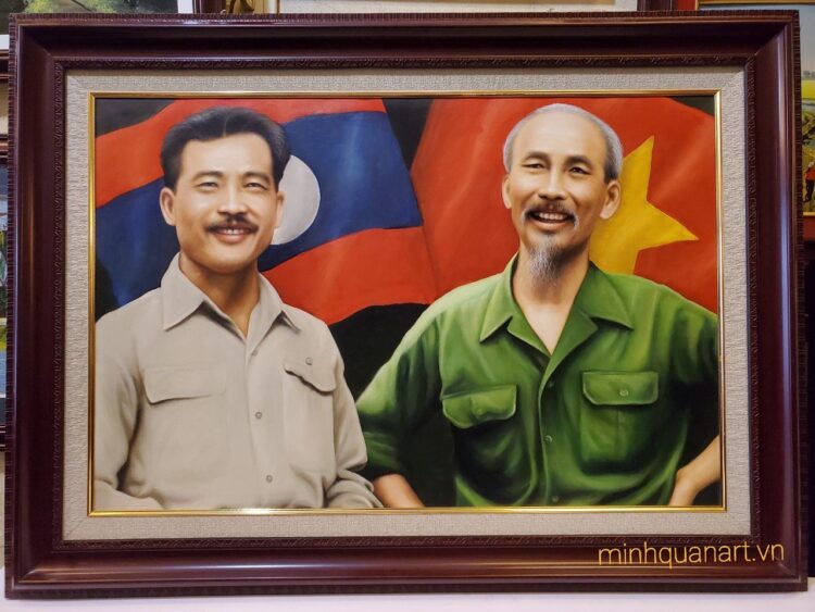 | Tên sản phẩm: | Tranh sơn dầu- Bác Hồ với Hoàng Thân XUPHANUVÔNG -S223 |