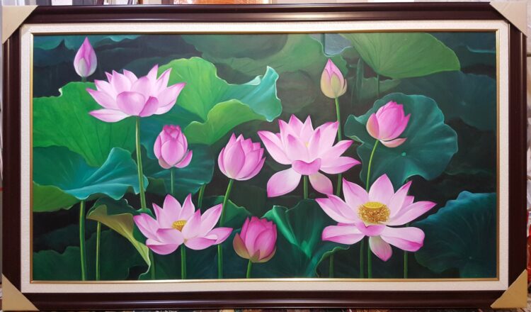 Tranh sơn dầu sen và ý nghĩa phong thủy