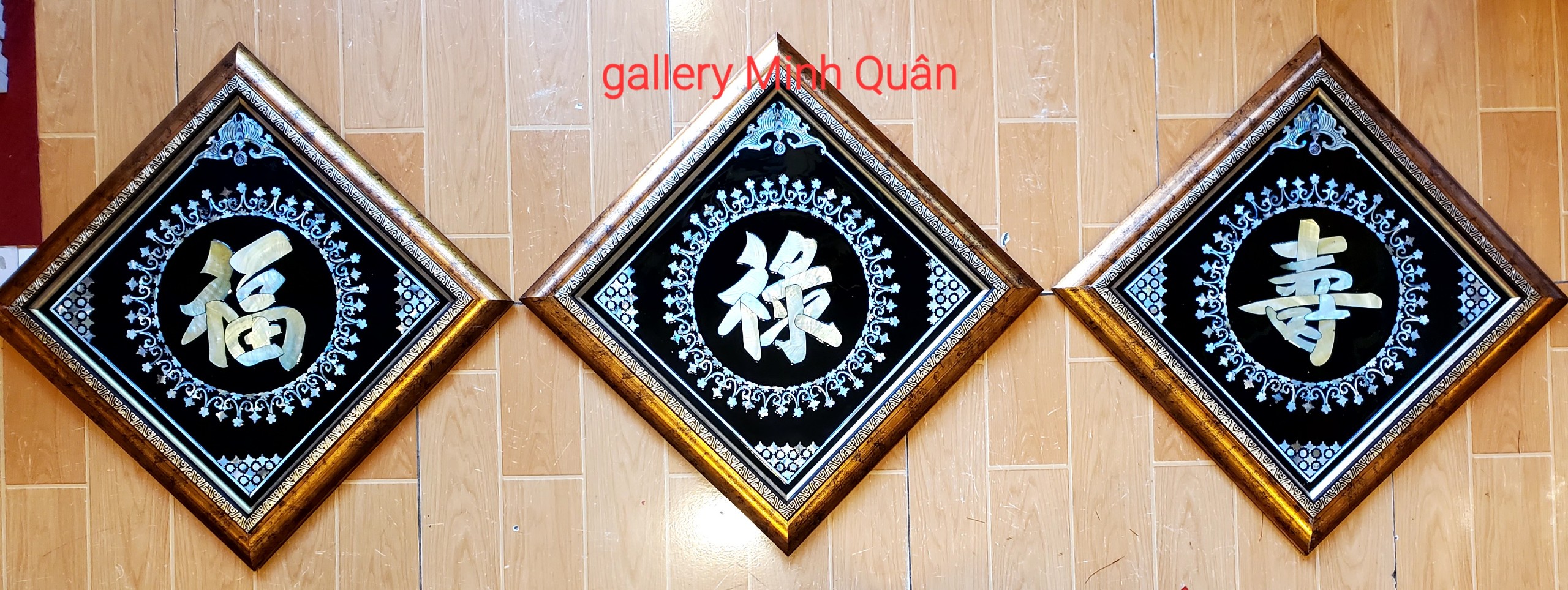 Tranh sơn mài cẩn ốc” Phúc Lộc Thọ”SM222T