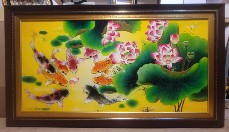 | Tên sản phẩm: | Tranh sơn mài- Cửu ngư quần hội – SM246 |