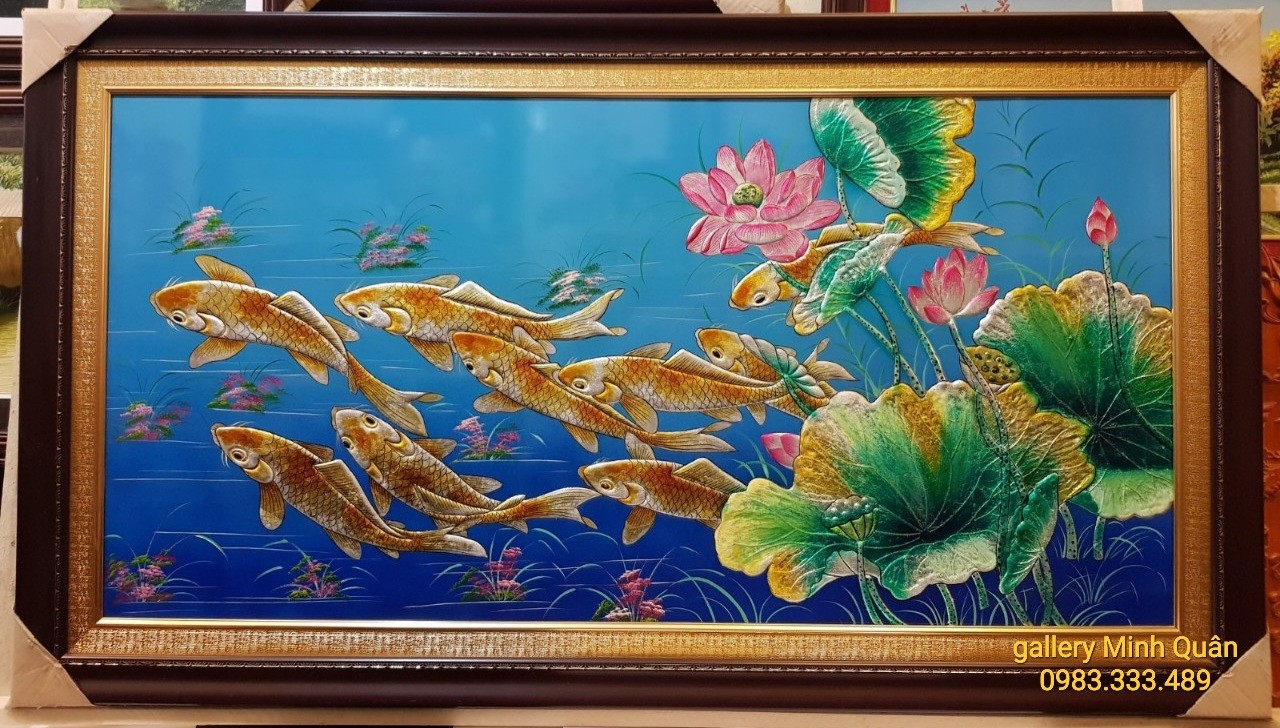 Tranh thêu tay tinh sảo cửu ngư quần tụ- Tranh thêu tay đồng quê
