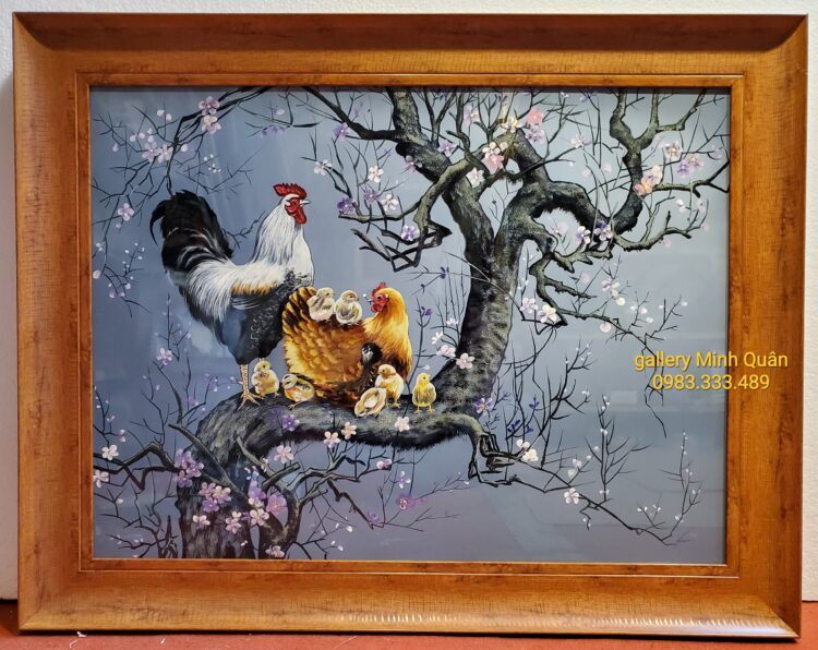Chất liệu: Vẽ sơn mài, ván gỗ dày 1,2cm