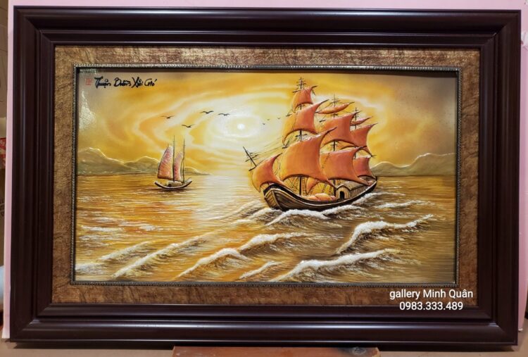 Tranh sứ phong cảnh Thuận buồm xuôi gió