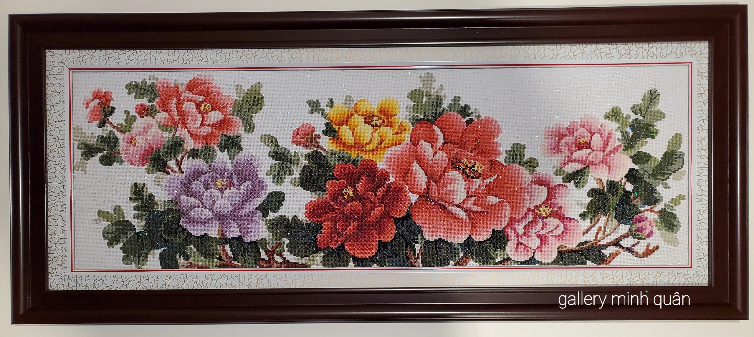 Tranh thêu chữ thập – Hoa mẫu đơn 8 bông hoa.