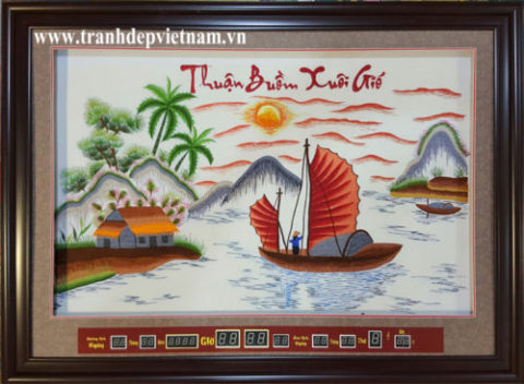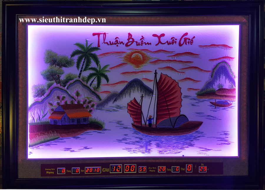 Tranh thêu đèn led lịch vạn niên- Thuận buồm xuôi gió