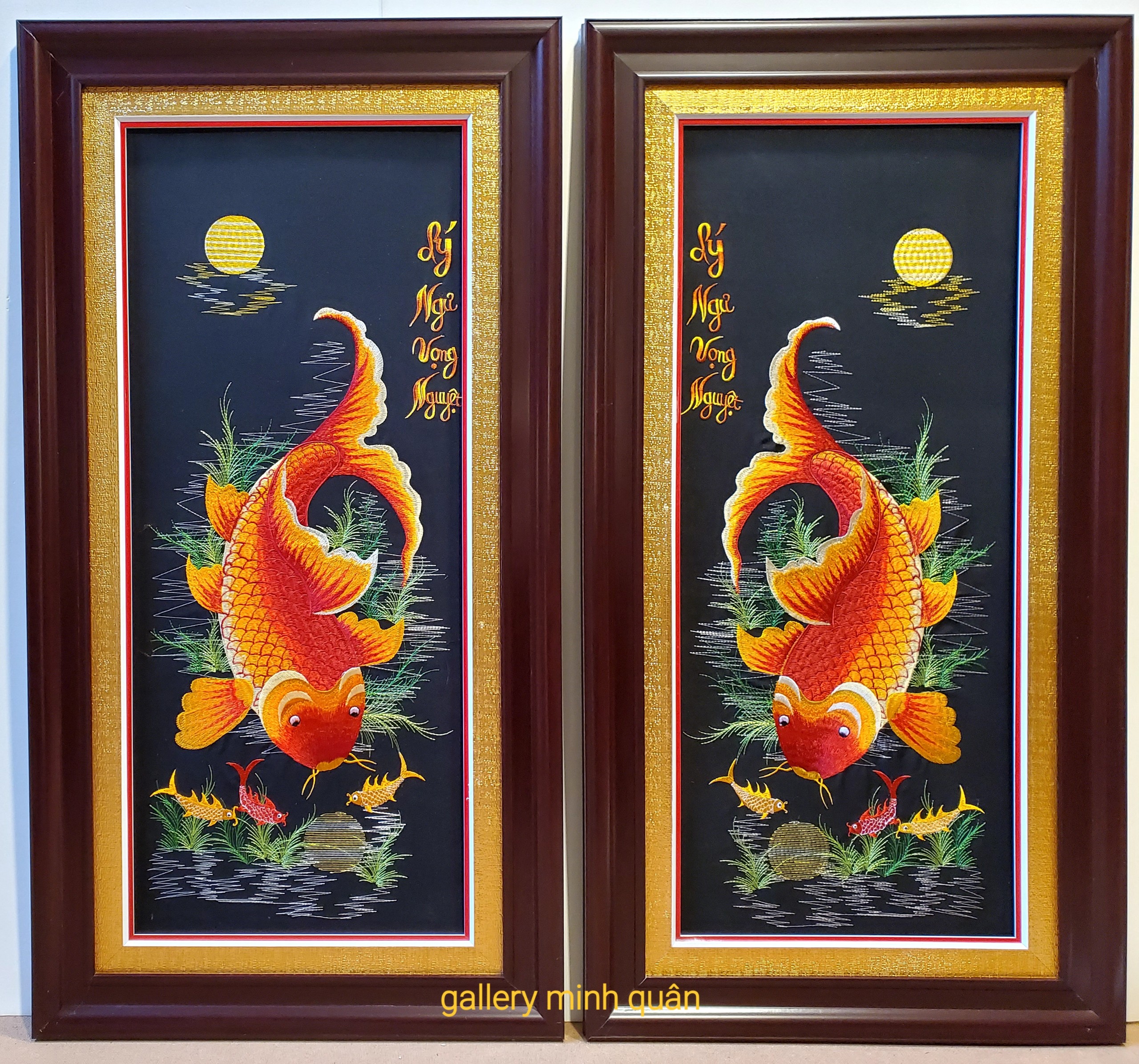 | Tên sản phẩm: | Tranh thêu – Lý ngư vọng nguyệt -F021 |