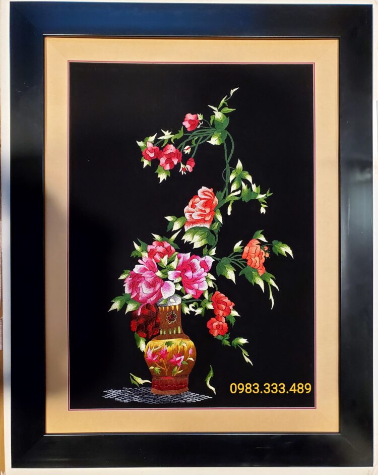 Tranh thêu tay – Bình Hoa Hồng – T073