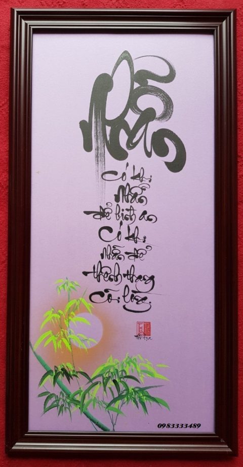 • Viết tay bằng mực tàu trên giấy sần ,tranh đã lồng khung kính.