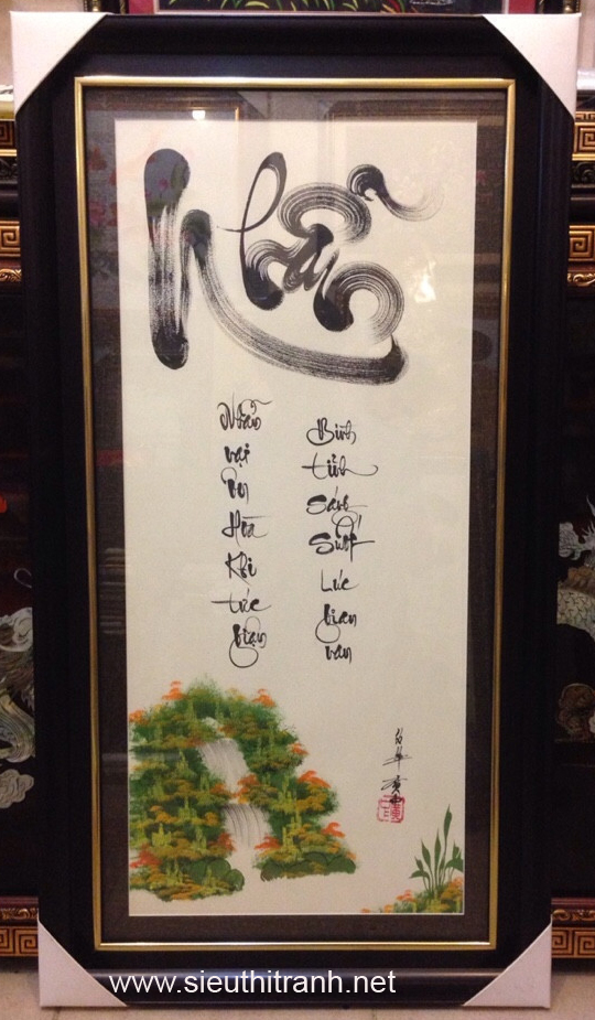 • Viết tay bằng mực tàu trên giấy sần ,tranh đã lồng khung kính.