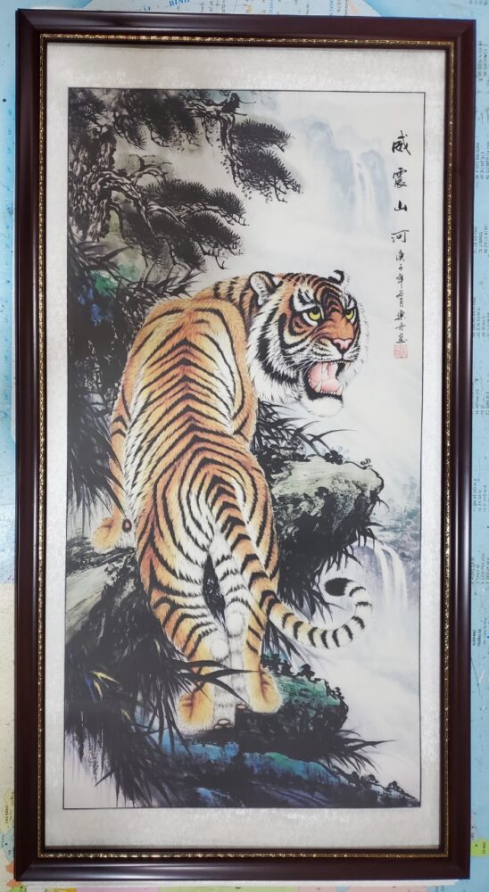 CHẤT LIỆU TRANH VẼ MỰC NƯỚC TRÊN GIẤY XUYẾN BỒI VIỀN TRANH BẰNG VẢI GẤM,CHẤT LIỆU KHUNG TRANH MÀU VÂN GỖ CỔ ĐIỂN SANG TRỌNG KHÔNG CONG VÊNH MỐI MỌT BỀN ĐẸP VỚI THỜI GIAN.