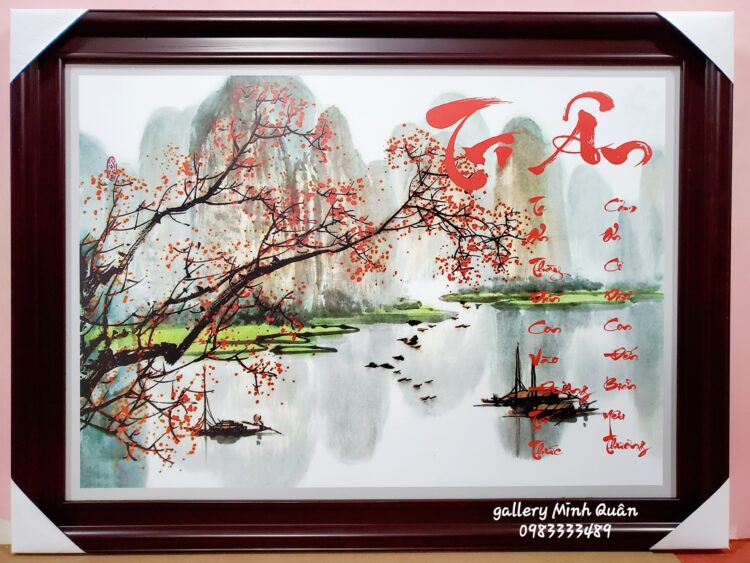 Chất liệu tranh in dầu trên màng lụa cao cấp được cán phủ lớp màng PE bảo vệ bề mặt tranh, dán ép trên tấm pormex dày 5mm độ bền màu đảm bảo trên 10 năm hình ảnh vẫn như mới.